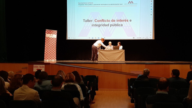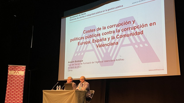 Anselm Bodoque, jefe del Servicio de Formación de la Agencia Valenciana Antifraude, expuso las políticas públicas de prevención del fraude y la corrupción, así como la razón de ser y funciones de la AVAF. La cultura de la integridad pública que impulsa la AVAF y la prevención de los riesgos en la toma de decisiones en la administración local fue la temática abordada por Pilar Moreno, técnica del Servicio de Formación de la Agencia. A su vez, Marita Oliver, técnica de formación de la AVAF, centró su intervención en los aspectos básicos del ciclo de lucha contra la corrupción.