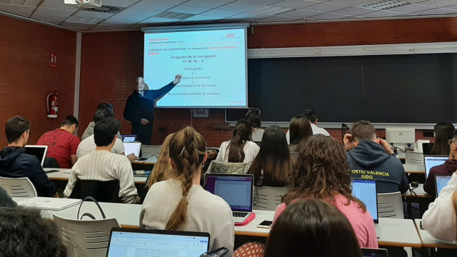 Los mecanismos de control existentes en la administración pública, así como los efectos económicos de la corrupción en la sociedad, junto con la creación de la Agencia Valenciana Antifraude han sido alguna de las preguntas formuladas por el alumnado participante en la actividad formativa.
