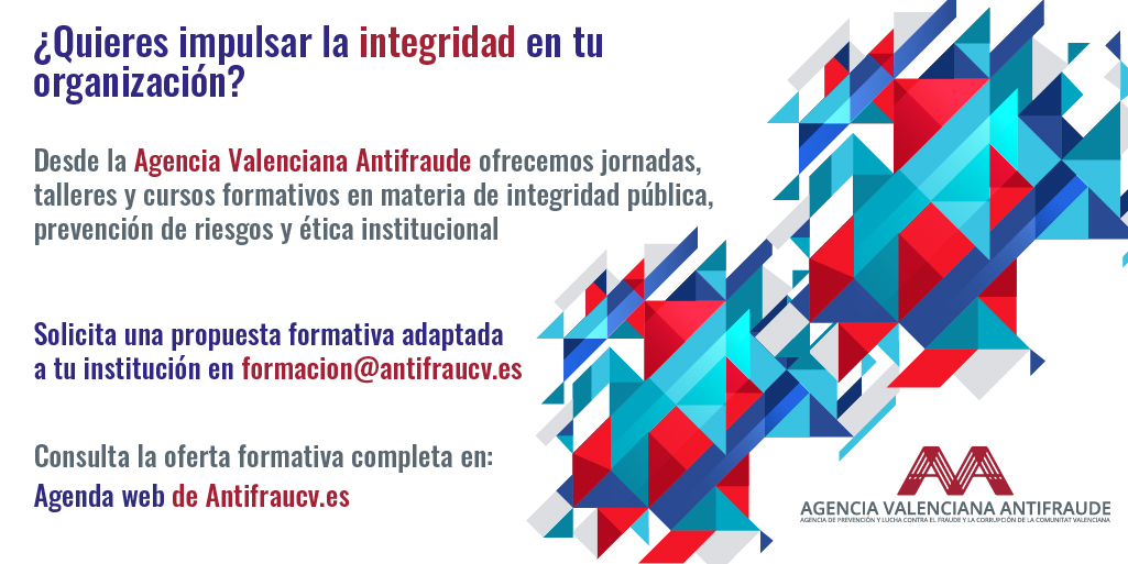 Si desea contar con formación especializada en materia de integridad y prevención de la corrupción, no dude en escribir a formacion@antifraucv.es