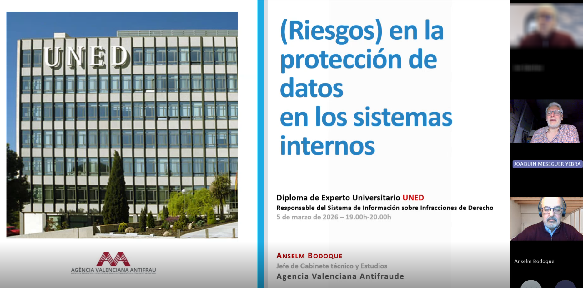 Anselm Bodoque, jefe de gabinete y estudios de la AVAF imparte en este título de experto universitario de la UNED, la sesión «Protección de datos en los sistemas internos.»