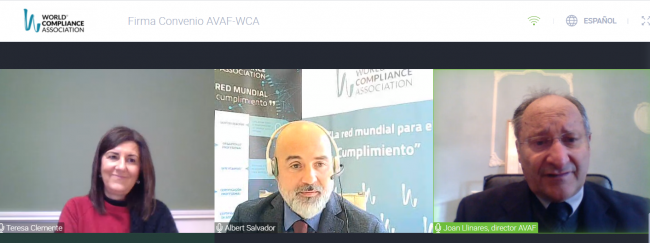 Valencia, January 12, 2021.- The World Compliance Association (WCA) and the Valencia Antifraude Agency (AVAF) have signed a collaboration agreement by which both entities establish a collaboration framework for carrying out training activities, transfer of knowledge and preparation of guides and manuals in the prevention and investigation of bad practices in public administrations and compliance with corruption.