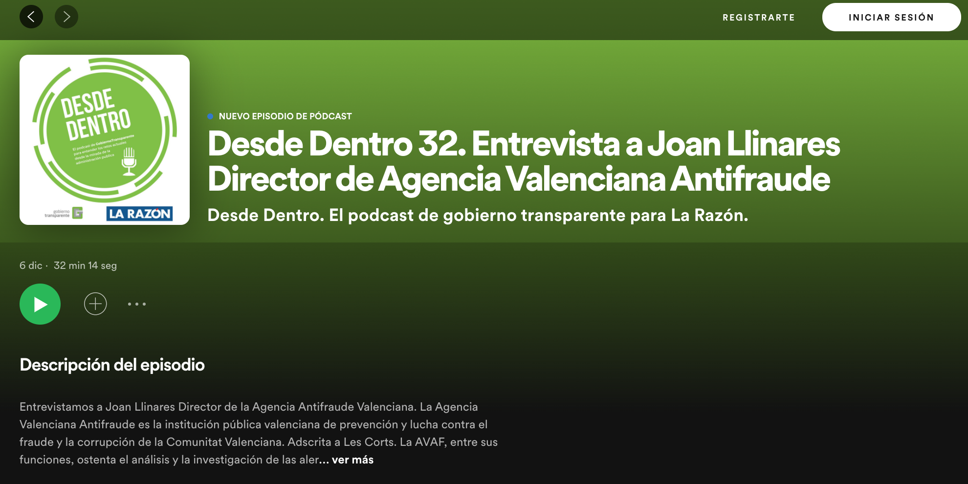 The director of the Valencian Anti-Fraud Agency, Joan Llinares, took part in the podcast “Desde dentro” on Transparent Government.