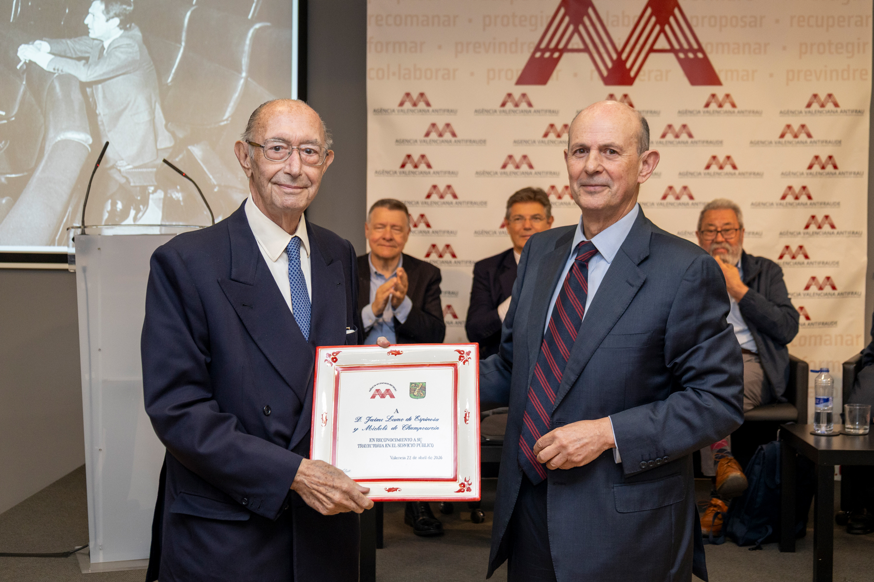 For his part, Jaime Lamo de Espinosa said, “I am deeply grateful that the Valencian Anti-Fraud Agency makes me this public recognition. I have always felt and I have acted as a Valencian, and for me this act is especially emotional and pleasant”.