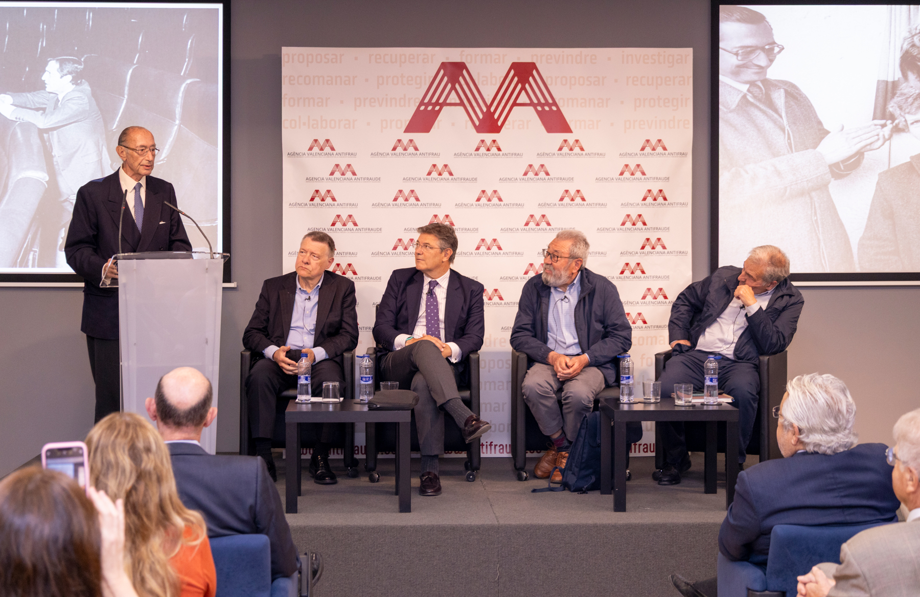 This public recognition was part of the conference: “Spain today. A vision from integrity and public ethics”, which included the participation of Jordi Sevilla, former Minister of Public Administrations, Rafael Catalá, former Minister of Justice and Development together with Cándido Méndez Rodríguez, Former Secretary General of the UGT, all of them under the moderation of Gregorio Martín, Professor Emeritus of the University of Valencia.