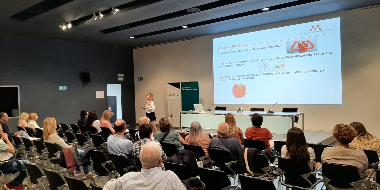 Los asistentes, más de 55 cargos electos, tuvieron la oportunidad de conocer las principales obligaciones en materia de integridad, los riesgos de su incumplimiento y la importancia de los marcos de integridad para la buena administración de la mano de Irene Bravo, jefa del Servicio de Prevención.