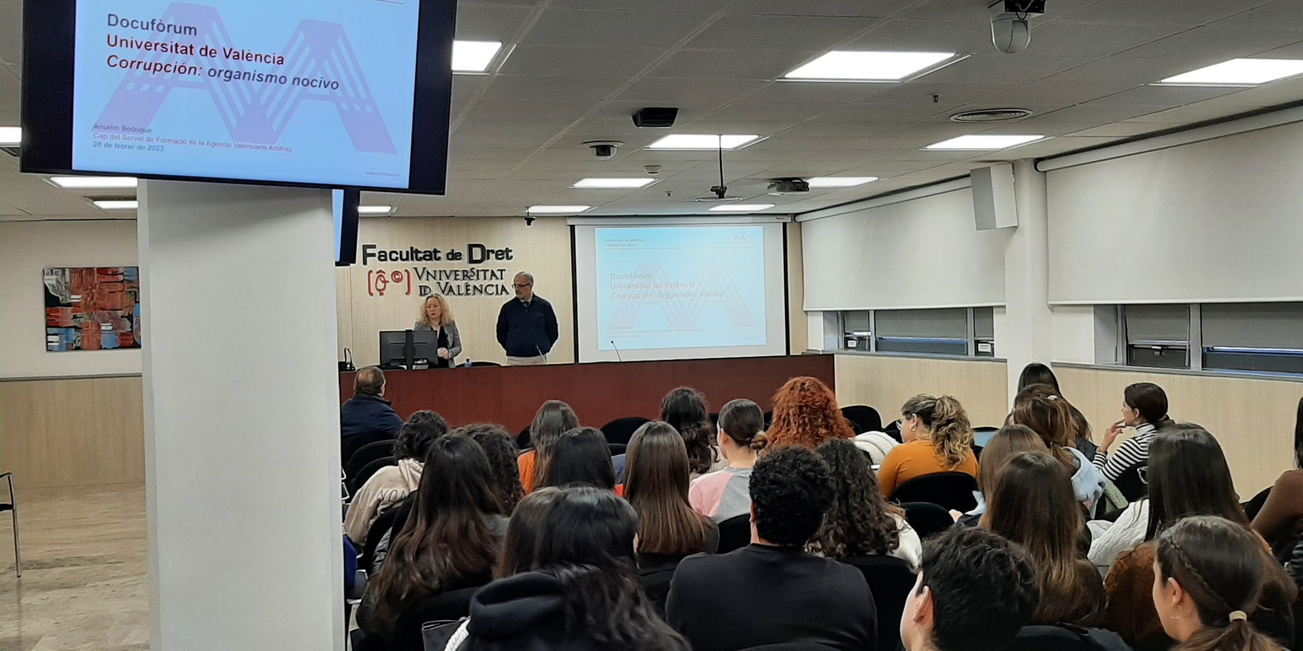 En aquesta ocasió, l’Agència Valenciana Antifrau ha debatut sobre aquestes qüestions amb alumnat del Doble Grau de Dret i Criminologia, del Grau de Dret i del Doble Grau de Ciències Polítiques i Dret. Així el dimarts 28 de febrer de 2023, es va celebrar un nou #DocufòrumAVAF en la Facultat de Dret, de la Universitat de València.