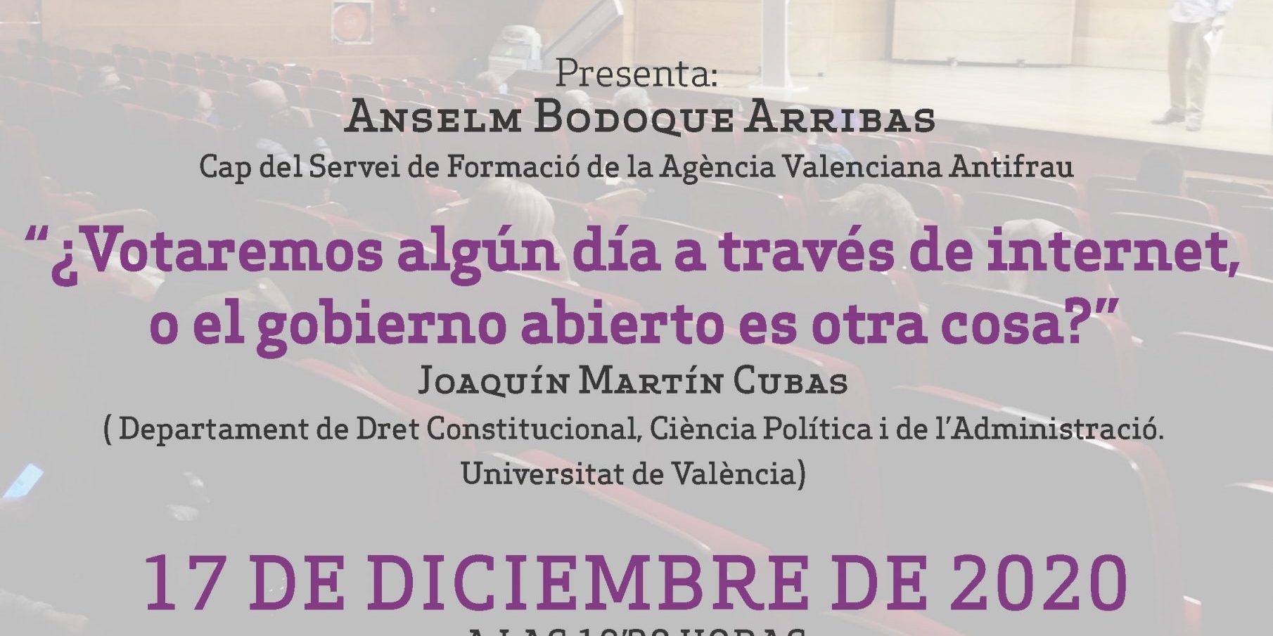 a càrrec de Joaquín Martín Cubas. Departament de Dret Constitucional, Ciència Política i de l’Administració de la Universitat de València. Temple de San Nicolás. C/ San Nicolás, 9.