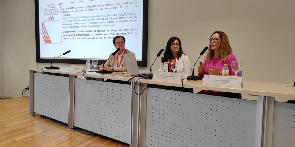 La representant de l’Agència Valenciana Antifrau, Irene Bravo Rey, cap del Servei de Prevenció va participar en qualitat de ponent, en el TALLER 3: “El paper dels secretaris, interventors i tresorers en la gestió dels Fons Europeus Next Generation.”, coordinat per Pilar Ortega Jiménez, vicepresidenta Segona de COSITAL al costat de Javier Font Miret, de la Divisió III de l’Oficina Nacional d’Auditoria. IGAE. La participació de la Cap del Servei de Prevenció, Irene Bravo Rey es va centrar, amb l’elaboració pròpia del material formatiu, en “El paper dels/les habilitats/des: Cap a la integritat institucional.” Va procedir, durant la seua ponència, a explicar el paper que exerceix l’Agència Valenciana Antifrau, les exigències dels Plans de Mesures Antifrau (PMA) arran de l’Ordre 1030/2021, de 29 de setembre, i l’enfocament d’integritat exigit tant per la normativa internacional, europea, nacional i autonòmica i el paper clau que exerceixen els habilitats nacionals en l’elaboració i implementació de l’estratègia d’integritat pública institucional. Va destacar els diversos materials elaborats per l’Agència en aquest àmbit: La Guia AVAF; les recomanacions en matèria de planificació, enriquiment injust i conflicte d’interés; els catàlegs de riscos i el manual didàctic visual, a l’efecte de la seua gran utilitat i com a material de suport i ajuda en la implantació d’una estratègia d’integritat pels habilitats nacionals, en les seues respectives institucions, com a garants de l’Estat de Dret, desgranant les funcions a exercir per aquests professionals en cadascuna de les fases que integren l’establiment d’una política d’integritat institucional.